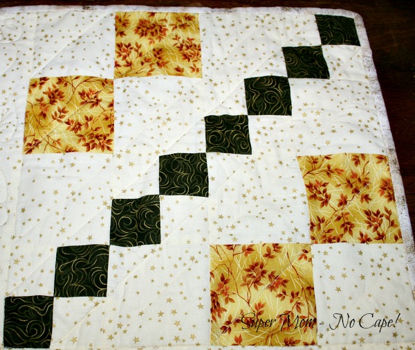 As I mentioned in my April goal post, the blocks for this table runner came from the very first quilt-a-long hosted by AmandaJean over at crazy mom quilts… way back in 2008. I had just started to learn to quilt and none of my blocks came out the same size. So rather than struggle to make them work in a larger quilt, I took the blocks that were closest in size to each other and made them into table runners. This was the last one that needed to be finished.