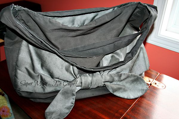 Saturday night, I cut out and then fused interfacing to the outside and the bow sections. Sunday morning was spent making the bow and sewing the outside of the purse together.