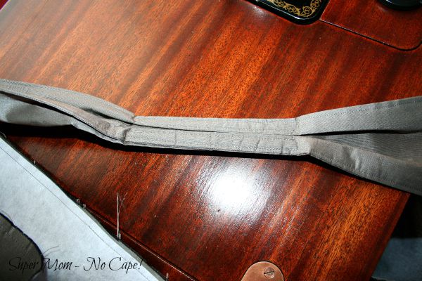 On the original purse, I’d made two straps but for this new one, she wanted a single strap. This strap is 5 inches wide where it attaches to the sides of the purse, so I pleated it in the middle to make a narrower section for over the shoulder. I actually like this version better.