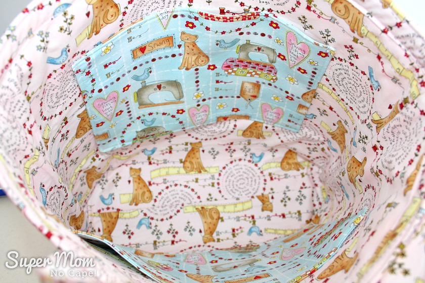 As you can see, it has two nice sized pockets to help keep things organized. (One of my pet peeves are tote bags without pockets.)