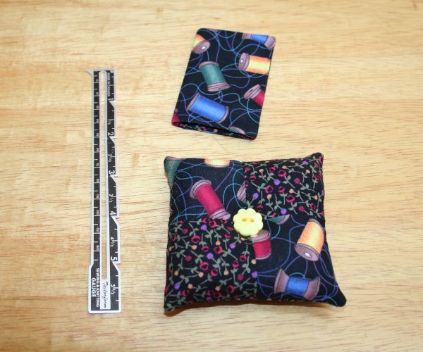 An extra hour of sewing will yield this matching needle book and pin cushion.