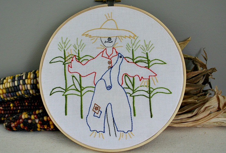 If you’re looking for something cute to add to your fall decor, Strawbyn Scarecrow is an easy to stitch project using only the basic stitches of backstitch, whipped backstitch, stem stitch and a tiny bit of satin stitch.