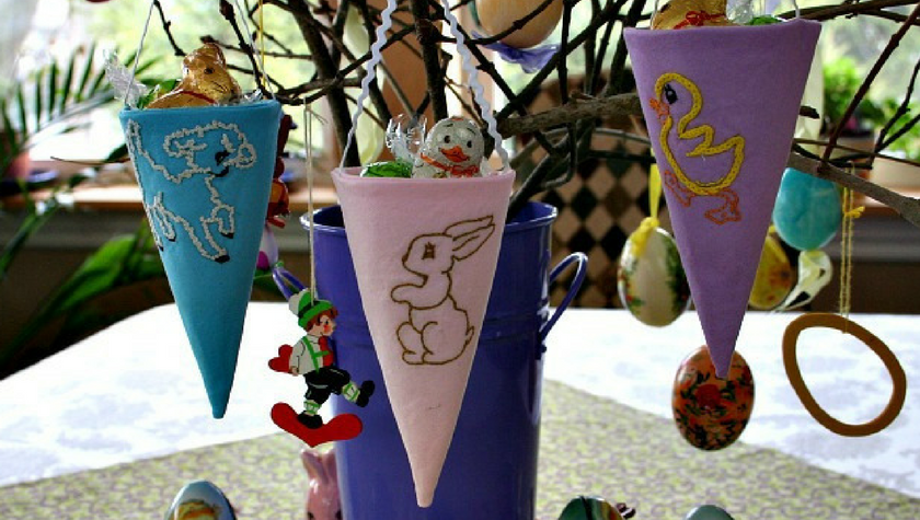 New this year on our branch are embroidered fabric Easter cones filled with candy.