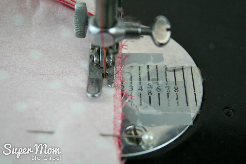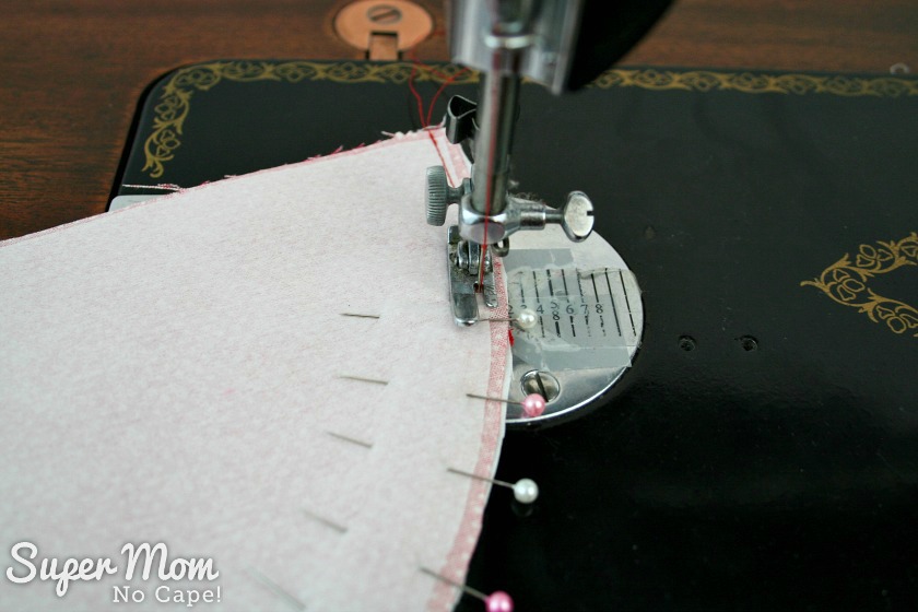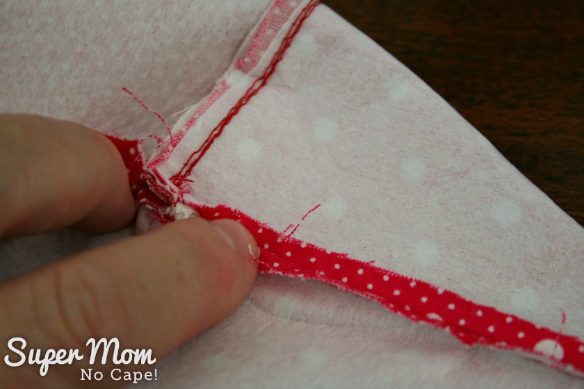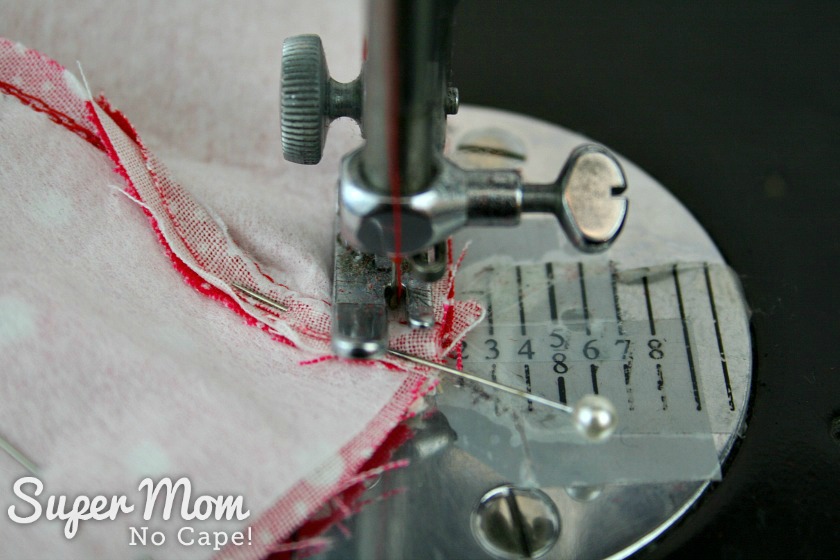 Make sure to leave an opening of at least 2″ in the lining seam for turning. To do this… begin your seam at the bottom of the lining (the pointed end,) sew for about an 1Β½”. Backstitch.