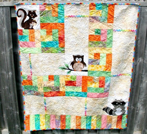 June 30, 2015 12:50 pmWhat a beautiful quilt! I love the detail you put into the cute little critters! The fabric you used for the backing is perfect! Job well done!