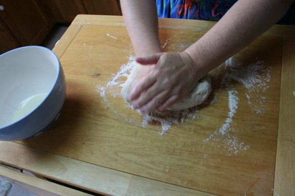 Scoop the dough out onto a floured surface and knead until the dough is soft and pliable.