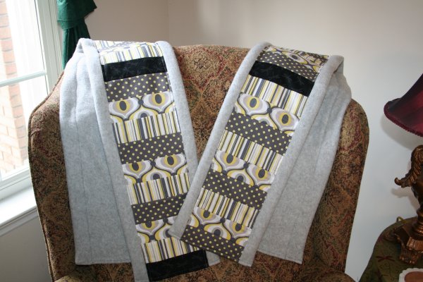 He also received one of the fleece patchwork scarves pictured below.