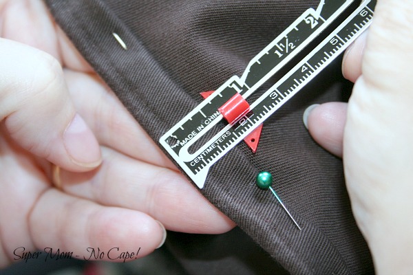 It turned out that where these pants were cuffed is the perfect length for me. But if they hadn’t been, I would have tried the pants on, folded up the hem to the desired length and had my assistant (Dave) pin the hem to hold it in place.