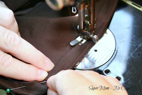 As I didn’t have an open arm machine, I then turned the pants right side out to make it easier to stitch the hem close to the folded edge.