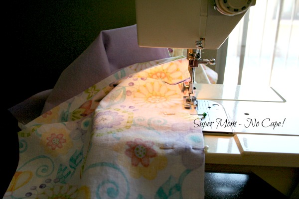 Sew all the way around, stopping and starting at the places marked by the pins, removing pins as you go. Back tack each time you stop and start.