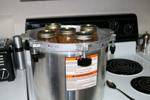 It’s tempting to turn the burner up to bring the canner up to pressure faster, but I’ve learned through experience that lower and slower is better and requires less adjusting of temperature once the correct pressure is reached.