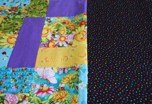 I took along the Smiling Sunflower quilt top to see if I could find border fabric that would work with it.