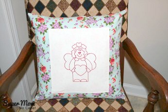 April 13, 2015 12:00 pmYour redwork angel is an adorable addition to your pillow! The instructions and photos are easy to follow on the tutorial, too. Lovely!