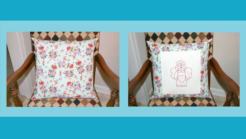 So you see, you can take a basic pillow cover and jazz it up with an embroidered applique or even with a piece of contrasting fabric.