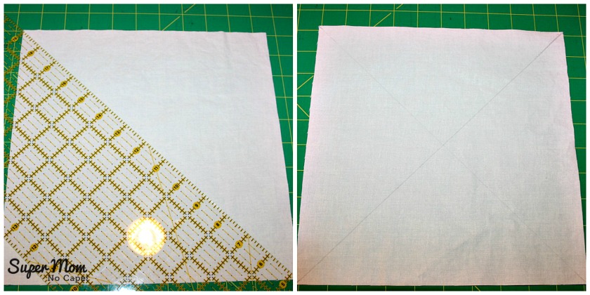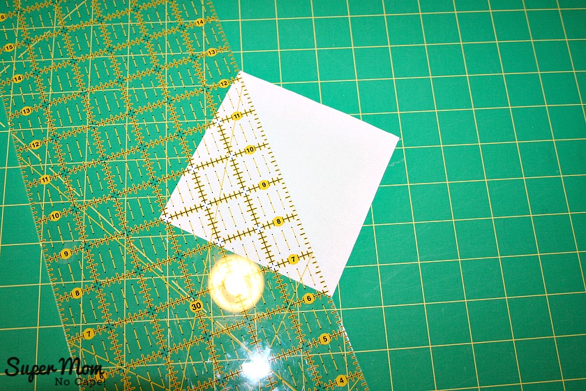 Next… line the 45º line of your ruler up along the ironed crease and continue to square up as usual.