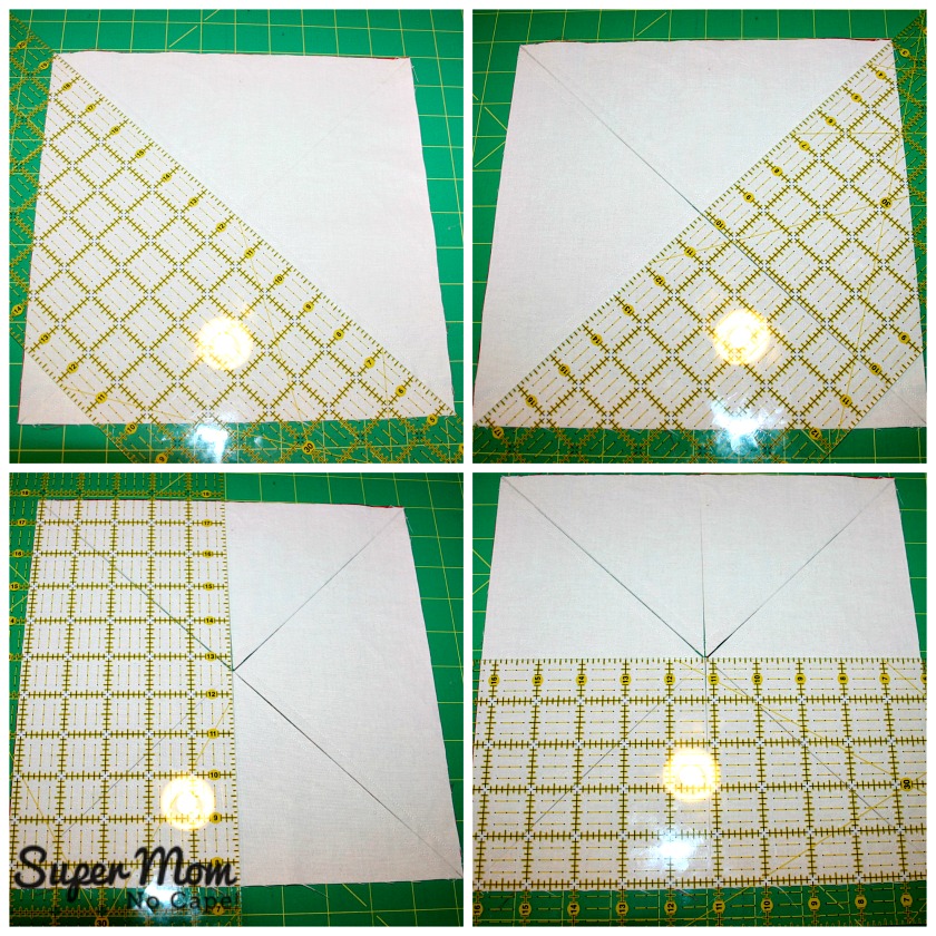 For the third and fourth cuts (bottom two photos) make sure to have your ruler lined up so that it is square and the side you will be cutting along lines up with where your stitching lines intersect.