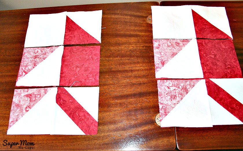Flip the right hand blocks over onto the middle blocks and sew using a scant ¼” seam.