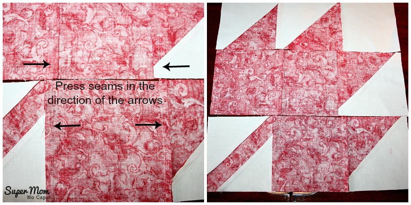 Press seams as indicated in the photo so the when you sew your rows together the seams will nest.