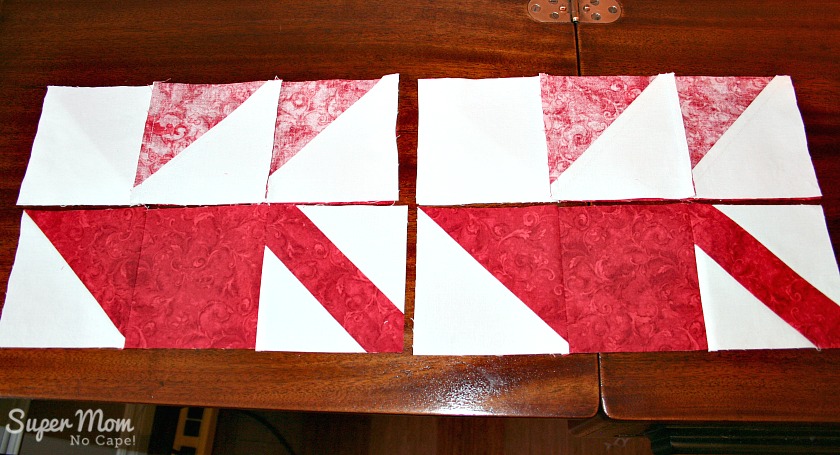 Press each hst with the seam towards the red fabric.
