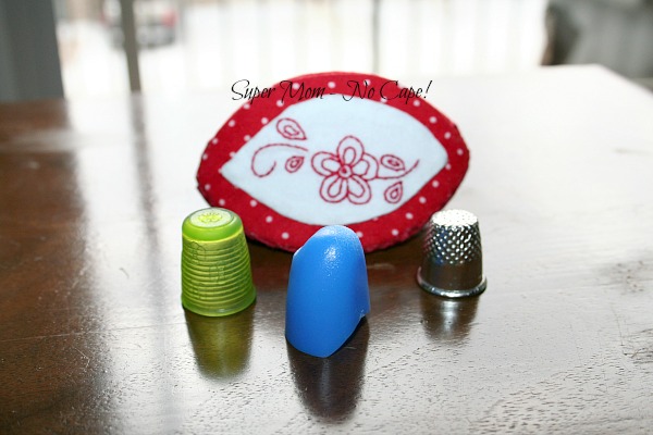 But that thimble pip takes a lot more pressure to squeeze open… which over time might really wear on the fabrics I used. I would not use that heavier kind of plastic container again.