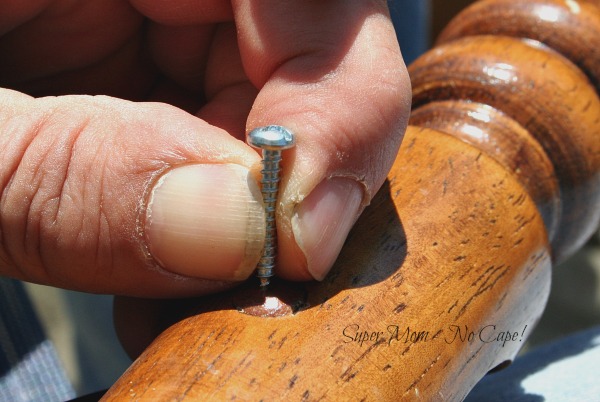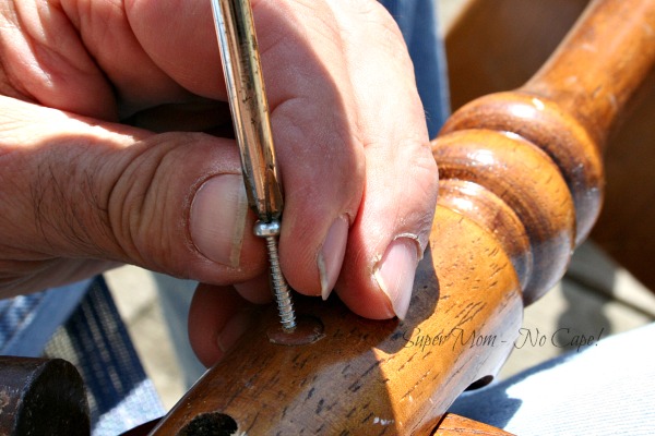 Once all the spindle holes are cleaned up, use the unbroken spindles from both chairs to create one good chair.
