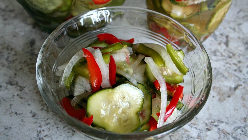 Refrigerator Pickles are quick and easy to make to have in the fridge as a sweet pickle condiment. No special canning equipment required.