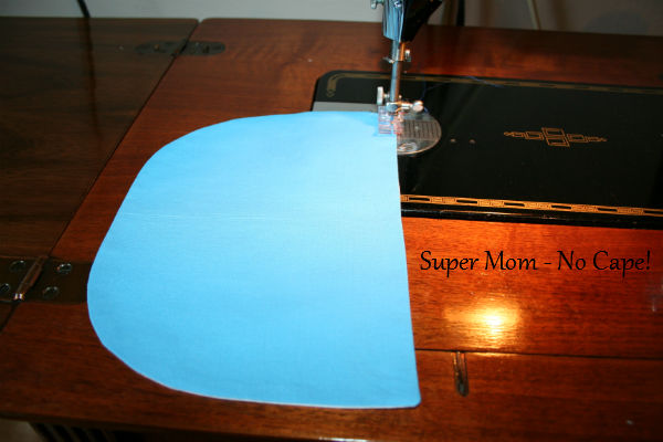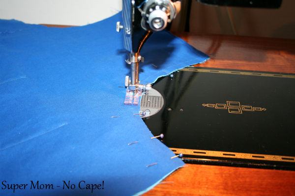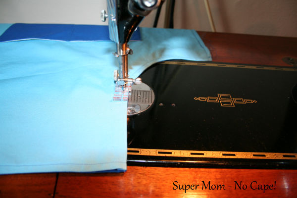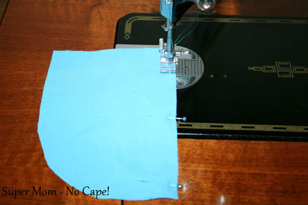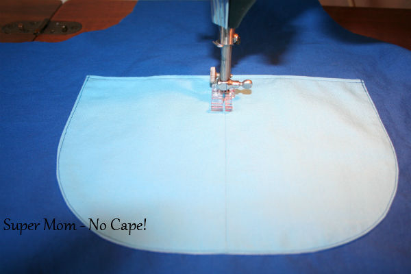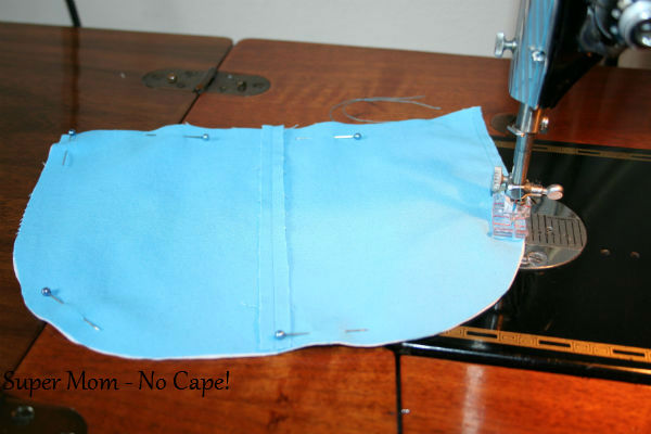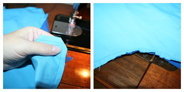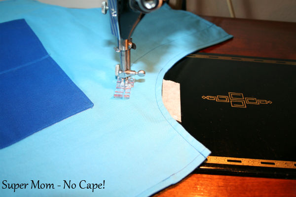 Sew close to the edge from the top of the pocket on one side around to the top of the pocket on the other side. Back tack at beginning and end of seam.