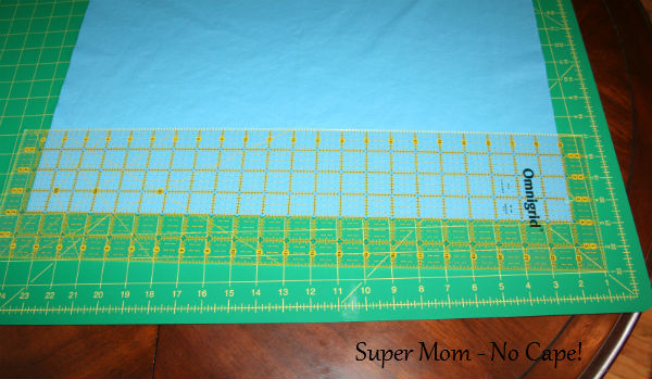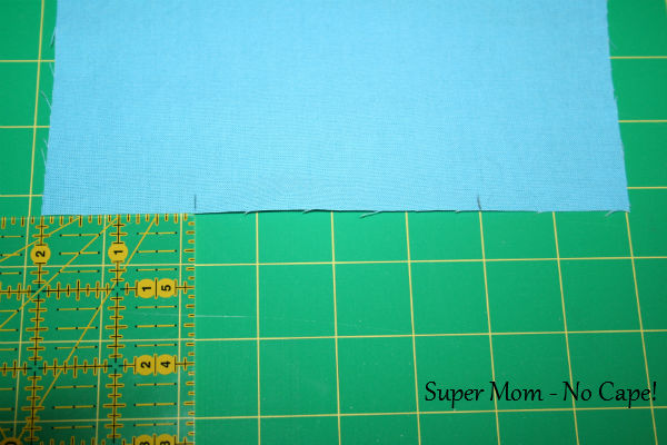 Place the two fat quarters that you want for the body of the apron, one on top of the other on your cutting board. Trim off the selvedges. Then square up the other three sides of the fat quarter.