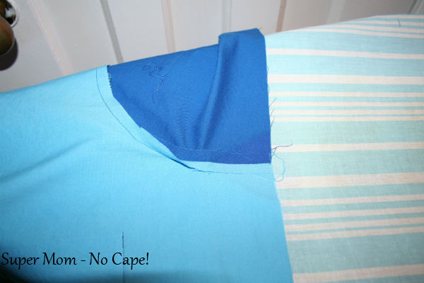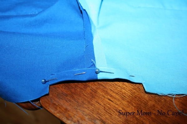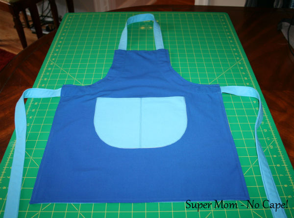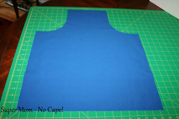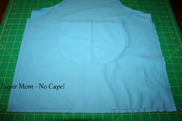 Don’t throw away the fabric you cut away. You’re going to use those cut outs to make the apron pockets.