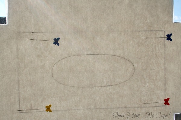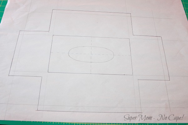 Create the oval for the center of the tissue box coverCenter the paper oval on the pattern by lining up the creases in the paper with the dashed lines. Trace around the oval.