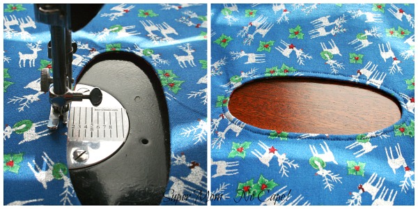 Topstitch 1/8″ from the edge all the way around the bottom of the tissue box cover.