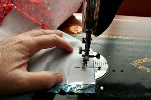 Trim off ½” from the sides and the ends. To hold the two pieces of interfacing together while trimming, I remove half the pattern and pin and then remove the other half of the pattern and pin.