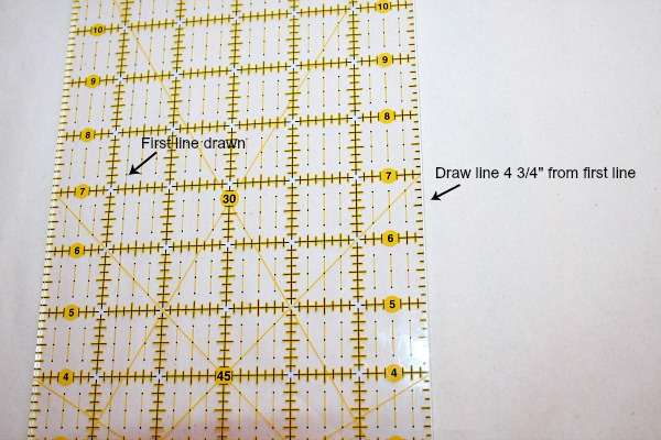 Next, draw a line 4 ¾” from the first line drawn. (Use the width of your tissue box.)
