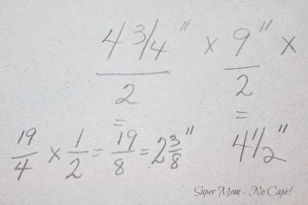 Now we’re going to do some very basic arithmetic. Divide the width and length of the top of the box in half. (Use a calculator if you don’t like doing fractions.)