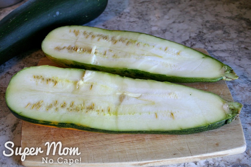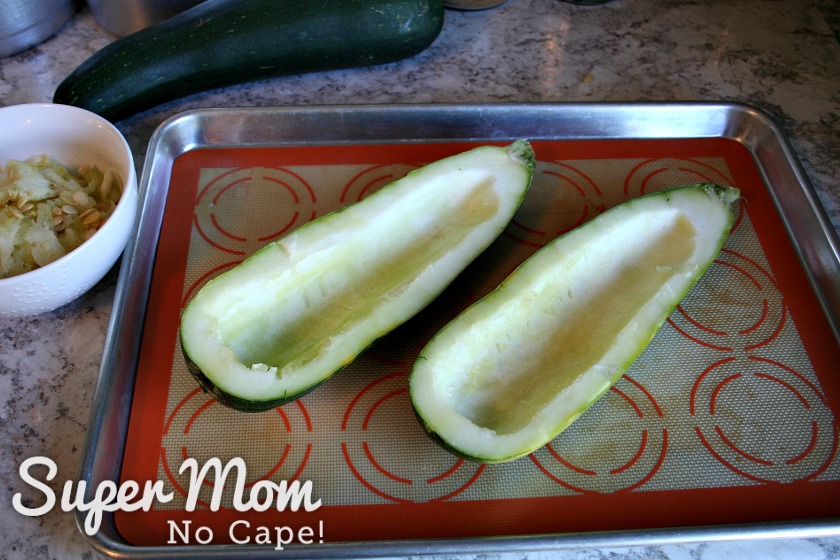 2. Hollow out the zucchini halves leaving as much of the flesh as possible.