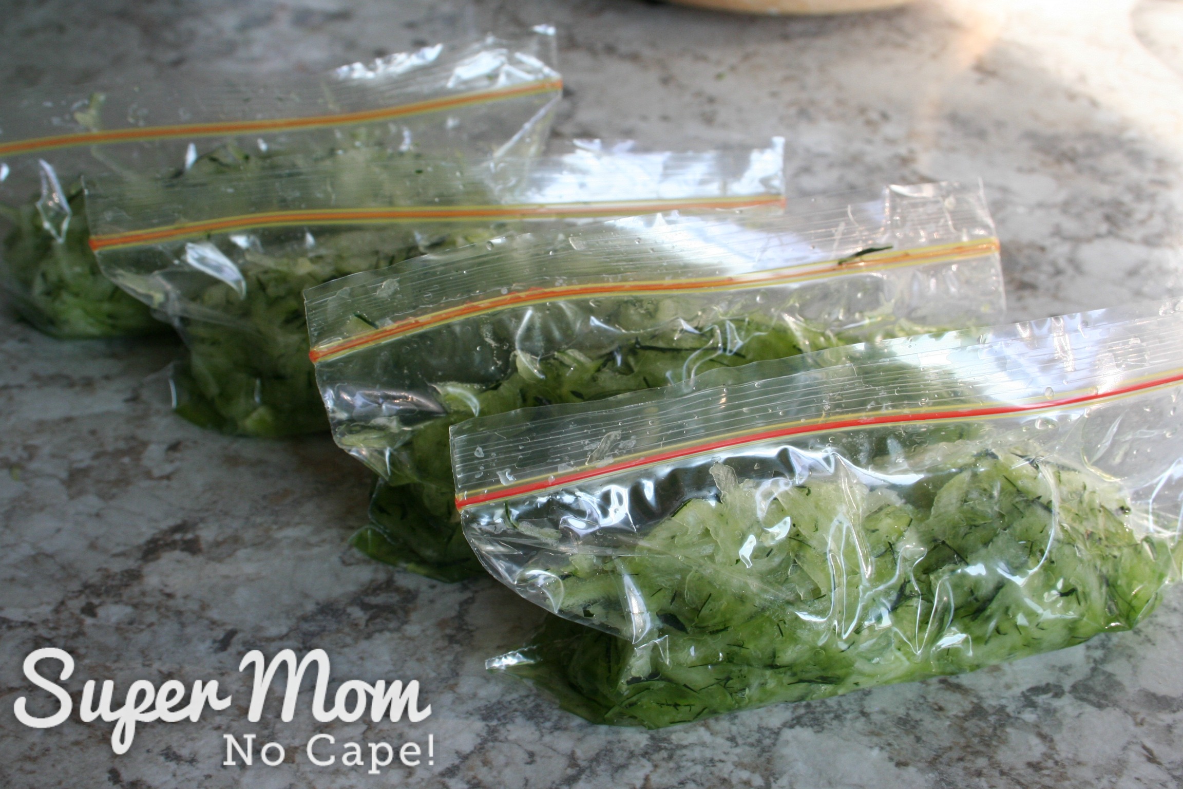 For that second large zucchini given to me by the farmer, I’ve measured out one cup of grated zucchini into snack sizes bags to be used this winter to make zucchini bread.