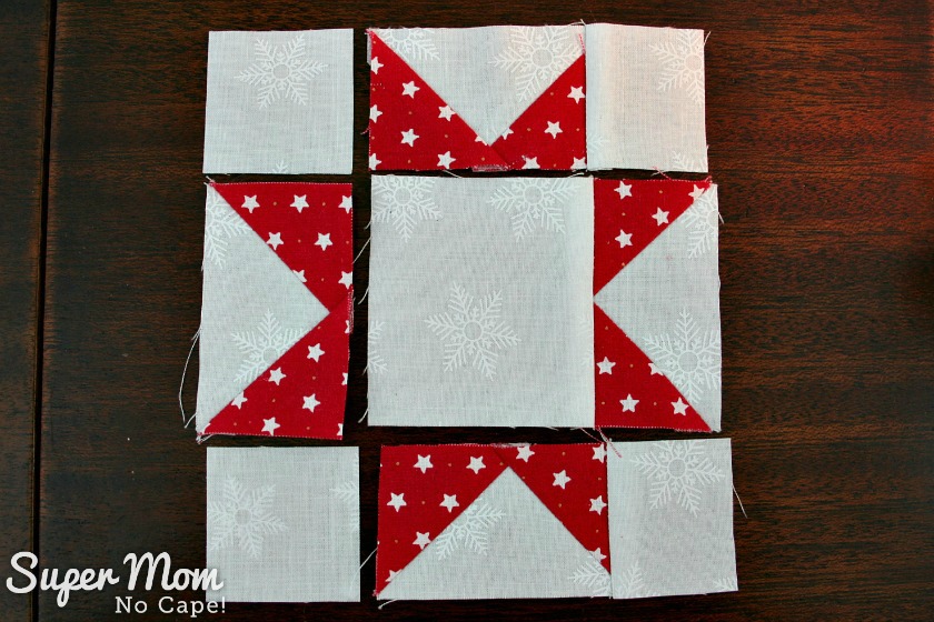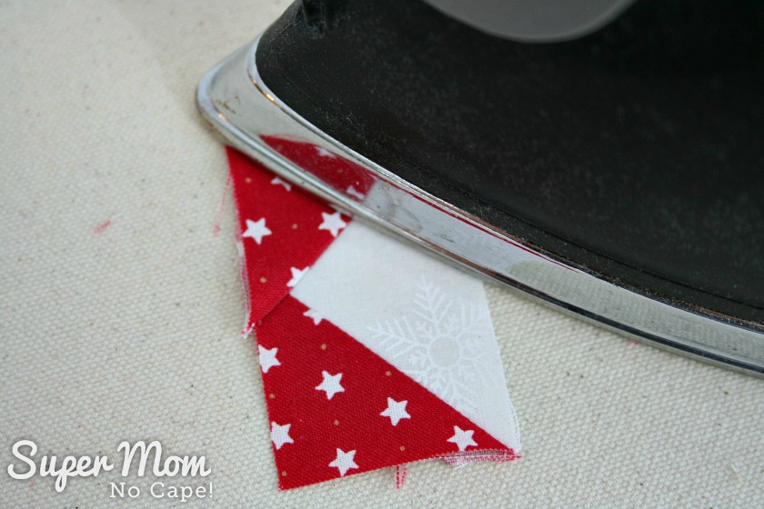 Now usually when pressing quilt blocks you are instructed to press towards the darker color. But in this case I’m going to tell you to press towards the lighter fabric.