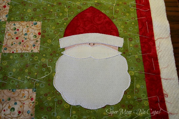 The Santa’s were used on using Thermoweb 17-Inch by 5-1/4-Yard Heat’n Bond Lite Iron-on Adhesive (<-affiliate link) and then I hand appliquéd them with a blanket stitch around each piece using pearl cotton in matching colours.