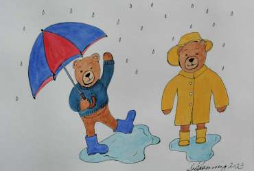 Rediscover the joy of splashing in puddles in the rain with these teddy bears. This pattern is of an original watercolor artwork drawn and painted by author and artist Susan…