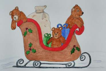 The teddies are ready to join Santa on his annual sleigh ride on Christmas Eve. This pattern is of an original watercolor artwork drawn and painted by author and artist…