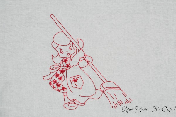 For Week #5 of our Chore Girl Stitch-a-Long she’s busy Sweeping the Floor.