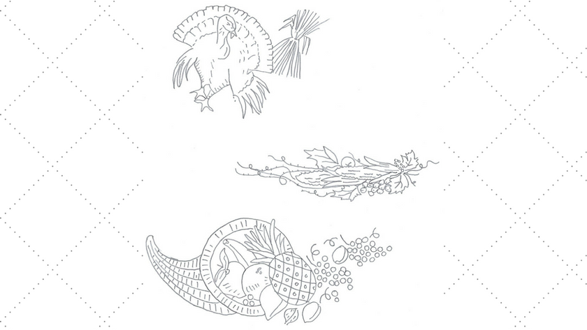 These small vintage Thanksgiving embroidery motifs for a turkey, corn wreath and cornucopia would look so sweet stitched on the corners of napkins for your Thanksgiving table. Make a set using just a single motif or use all three, each stitched in different color combinations so that each person’s napkin is unique. Or get the kids to help make the…