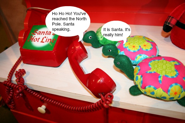 There were so many things we wanted to ask. Like how he fits all the toys for all the boys and girls and turtles in the world in his sleigh. And does Mrs. Claus ever go with him on Christmas Eve. And how many elves there are. And lots and lots more questions.