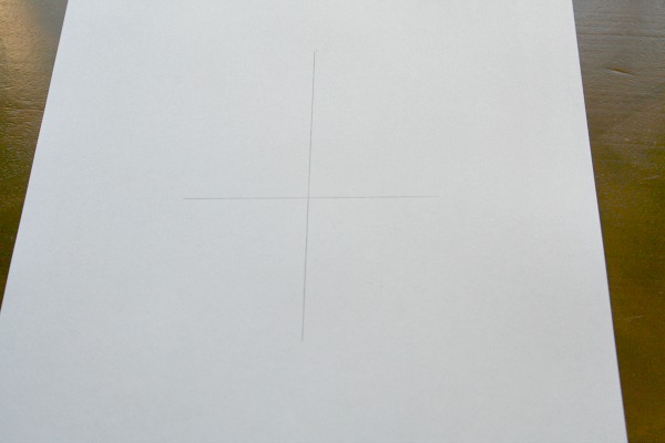 Draw two perpendicular lines (lines that intersect at a 90 degree angle) in the middle of a piece of paper.