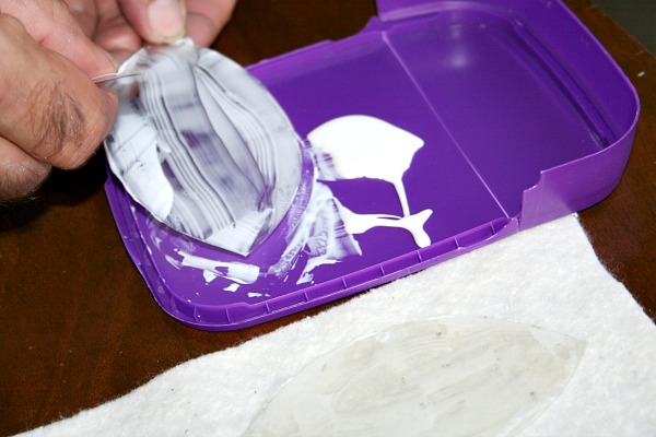 At this point, I like to clean off any of the black marker that may be left on the pip form after cutting them out. The marker wipes right off with a cotton ball dipped in nail polish remover. Dry the form with a piece of paper towel.