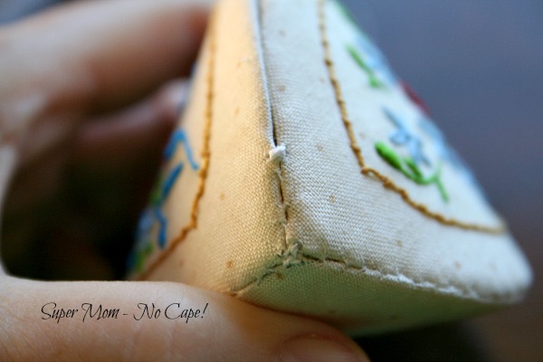 When you come to the points on each end, fold them neatly and secure with a couple of tiny stitches.