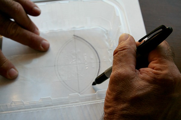 To make the templates, place the paper pattern under the plastic container you are repurposing and trace.