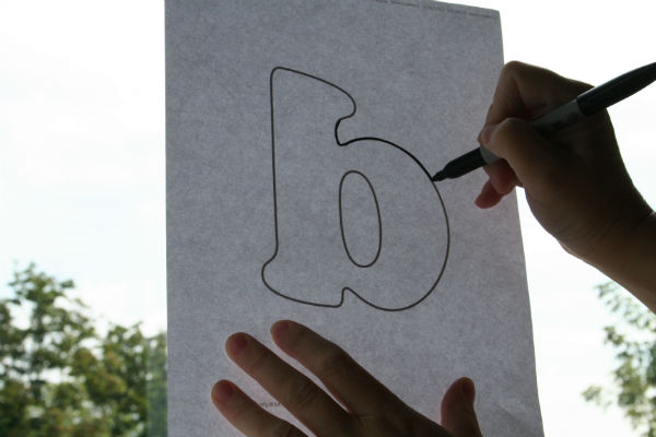 You will need to reverse the letters. To do this, flip the printed page over and trace the outline of the letter on the other side of the paper.