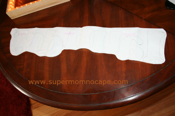 Print out the letters for the word “laundry” (or whatever word you’d like on the laundry bag.) I used the lower case bubble letters found here.