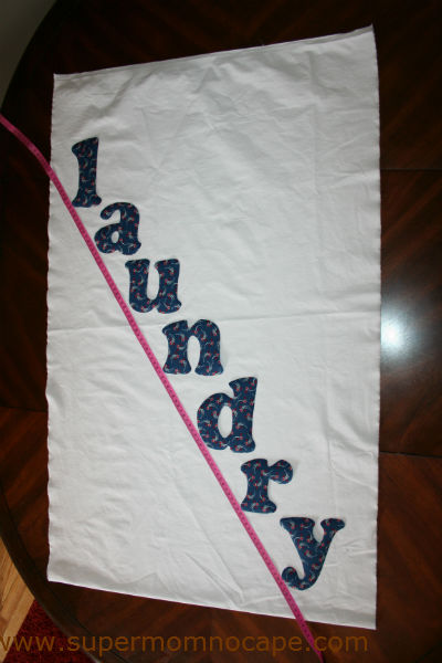 For my laundry bags, I placed the “l” 2 inches from the edge of the fabric between 4 and 5 inches from the top and the “y” 2 inches from the edge approximately 3 inches up from the bottom and then used a tape measure as a guide for where to place the other letters as pictured above. You can be as precise or creative as you like in the placement and spacing of your letters.